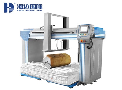 1、利用一只橫向滾動的木制六角型桶或圓柱體(兩端直徑250 mm, 中間部分300 mm), 在被測試床墊上來回滾動, 模擬人體動作以評估床墊的耐用性.