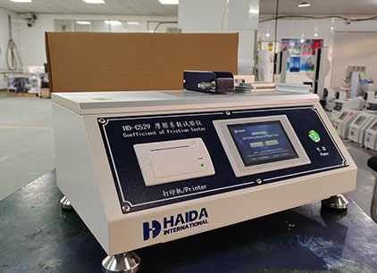海達(dá)儀器HD-C529 摩擦系數(shù)試驗(yàn)儀,按照《GB 10006-88》及《ISO 8295-1986》標(biāo)準(zhǔn),針對(duì)厚度在0.2mm以下的非粘性塑料薄膜和薄片,在自身或在其他材料表面滑動(dòng)時(shí),動(dòng)摩擦系數(shù)和靜摩擦系數(shù)的測(cè)定,也可用于紙張、紡織品、橡膠、鋁箔、印刷品及屏幕保護(hù)膜等產(chǎn)品。通過(guò)摩擦系數(shù)的測(cè)定值,判斷被測(cè)產(chǎn)品的順滑度。